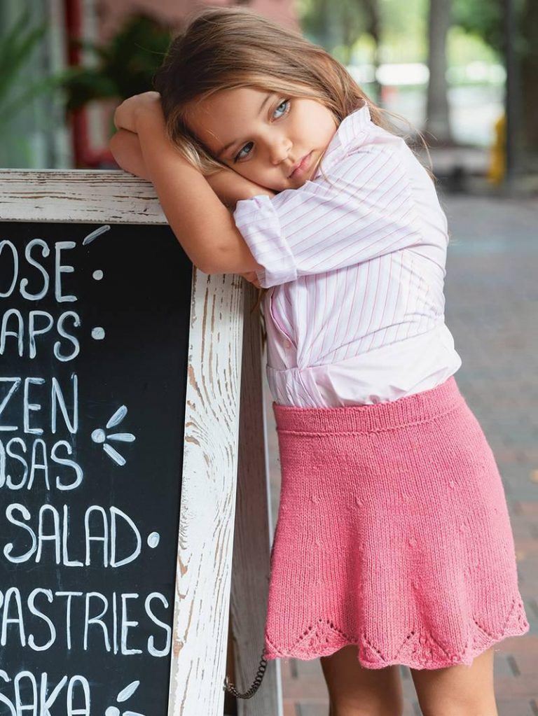 The skirt is knitted bottom-up in Line. The pattern contains 6a and 6b.