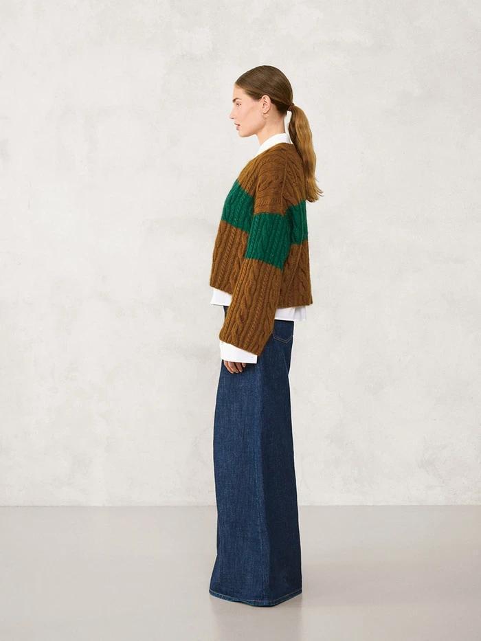 Brady Sweater in Sunday and Tynn Silk Mohair – a soft and versatile sweater with a low neck, knitted from the top down with one strand of each yarn. The striped pattern adds a playful touch, while the classic fit makes it a reliable wardrobe favourite.