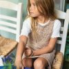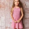 The dress is knitted bottom-up in stockinette stitch with 1 strand of Mandarin Petit and 1 strand of Tynn Line.