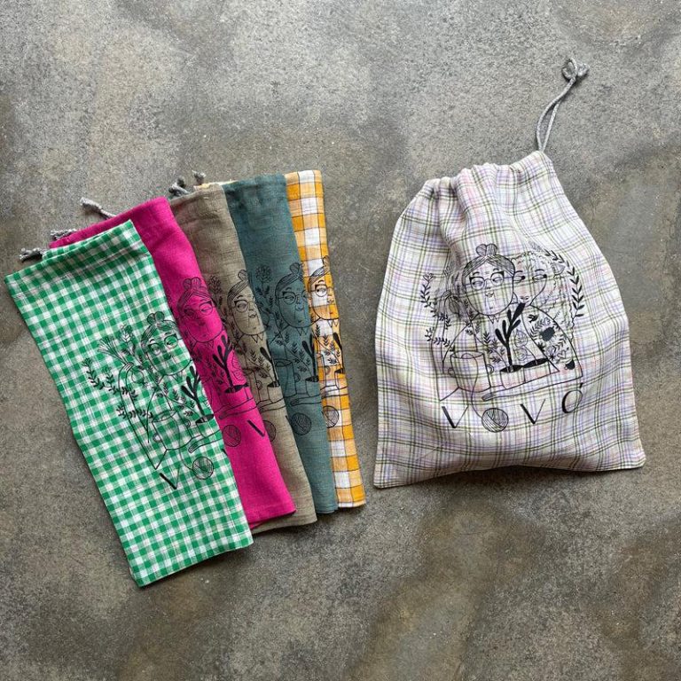 Drawstring project bags featuring the original illustration by Joana Estrela for our yarn Mondim. These bags are now entirely made in Portugal using top-quality shirting fabrics.