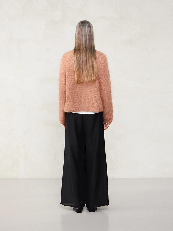 Rookie Sweater in Ballerina Chunky Mohair – a beginner-friendly raglan sweater that knits up quickly on large needles. Worked from the top down in a single strand and easy to adjust in length. Soft, light, and perfect as a first sweater project or a quick, warm favourite.