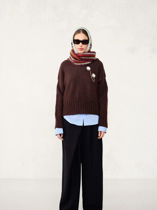 Snuggle Hood in Børstet Alpakka with stripes in Ballerina Chunky Mohair – a soft and warm hood with a neck that can be wrapped around 2–3 times. Knitted from the top down in stockinette with fluffy stripes, perfect for keeping you cosy and stylish on chilly days. Mix and match colours and stripes as you like.